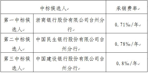 臺(tái)州市金融投資集團(tuán)有限公司超短期融資券發(fā)行承銷商招標(biāo)(非政府采購(gòu))項(xiàng)目,經(jīng)評(píng)標(biāo)委員會(huì)評(píng)審,結(jié)果公示如下: