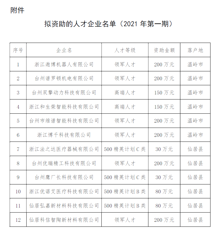 附件:擬資助的人才企業(yè)名單(2021年第一期)