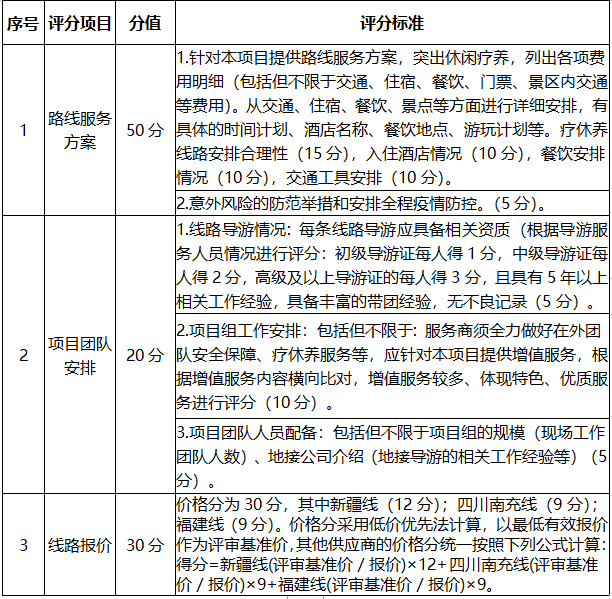 2.比選內(nèi)容:采購3家療休養(yǎng)服務(wù)供應(yīng)商,比選邀請范圍為臺州市星級品質(zhì)旅行社名錄內(nèi)四星級以旅行社和市屬國企平臺的旅行社。