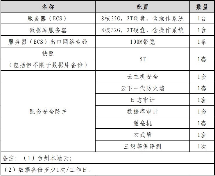 具體需求和規(guī)格如下表: