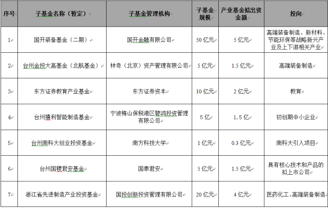 浙江臺(tái)州轉(zhuǎn)型升級(jí)產(chǎn)業(yè)基金擬設(shè)立子基金名單