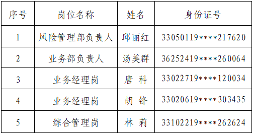 根據(jù)浙江臺金融資租賃有限公司2022年11月15日公開招聘公告要求,經(jīng)公開報名、職業(yè)能力評價、面試、體檢和考察、會議研究等程序,確定以下人員為擬錄用人員,現(xiàn)公示如下: